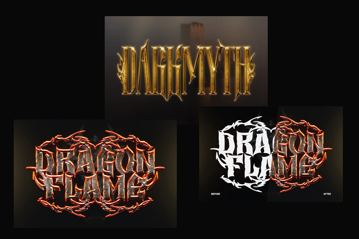 Create majestic and dramatic typography with this ornamental gothic chrome text effect template. Inspired by medieval blackletter calligraphy, fantasy title design, and metallic engraved aesthetics, this style is perfect for legendary branding and epic cinematic visuals.