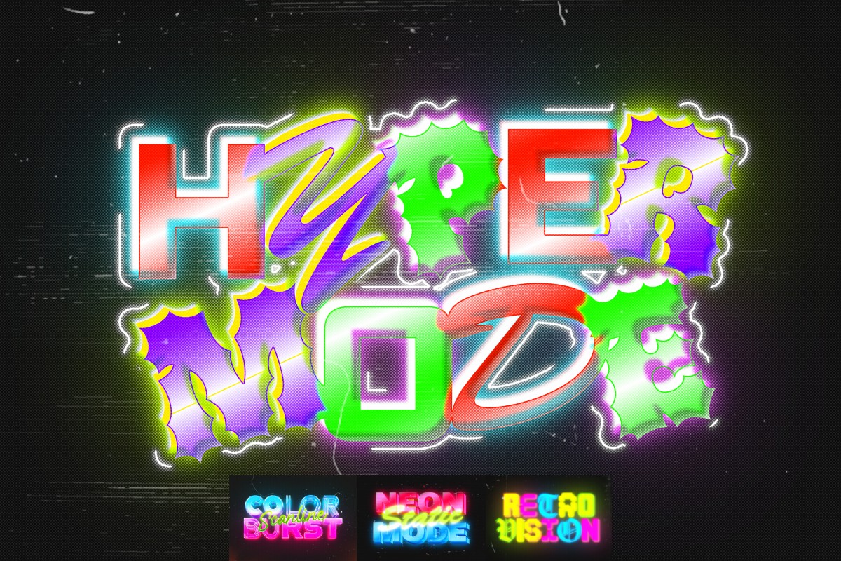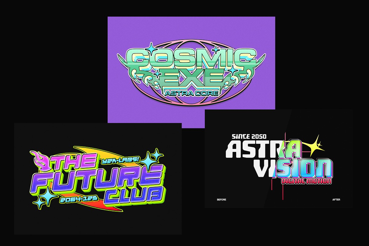 The Retro Y2K Text Effect includes bold cyber-inspired typography with vibrant gradients and glossy highlights, designed for modern digital branding projects.
