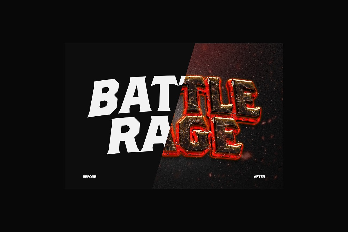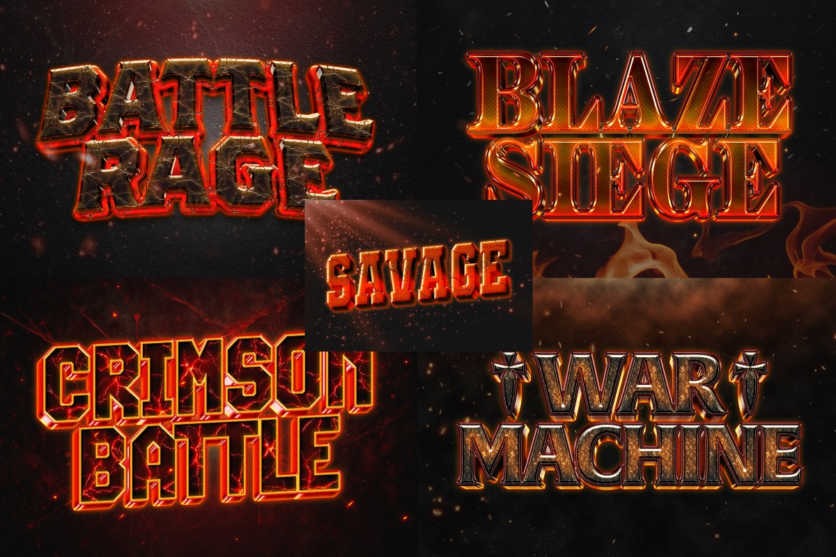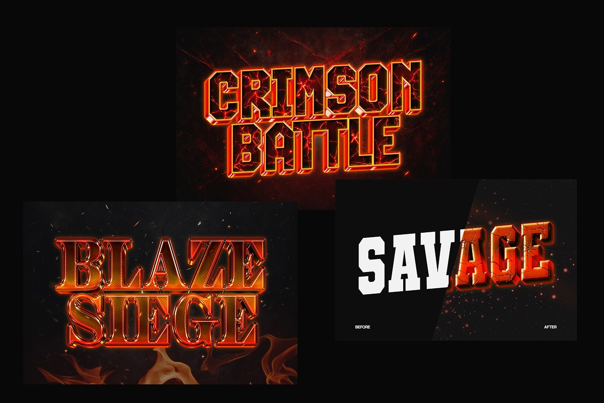 Battle cinematic text effects featuring bold metallic typography, fiery glow, and dramatic lighting. Designed to create powerful titles with intense, high-impact visuals inspired by action games and cinematic scenes.