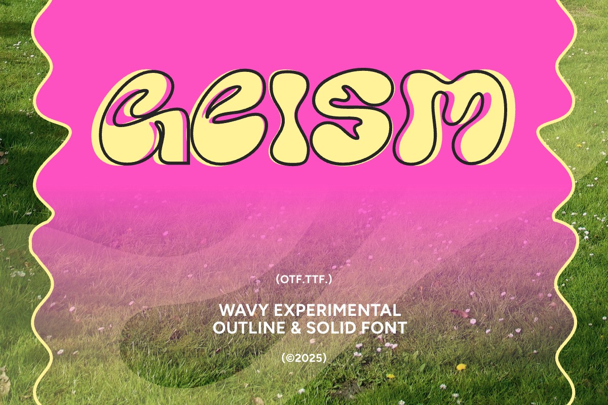 Exuding a playful yet sophisticated character, Geism is a wavy display font with soft, blobby curves that strike a balance between retro charm and modern vibrancy
